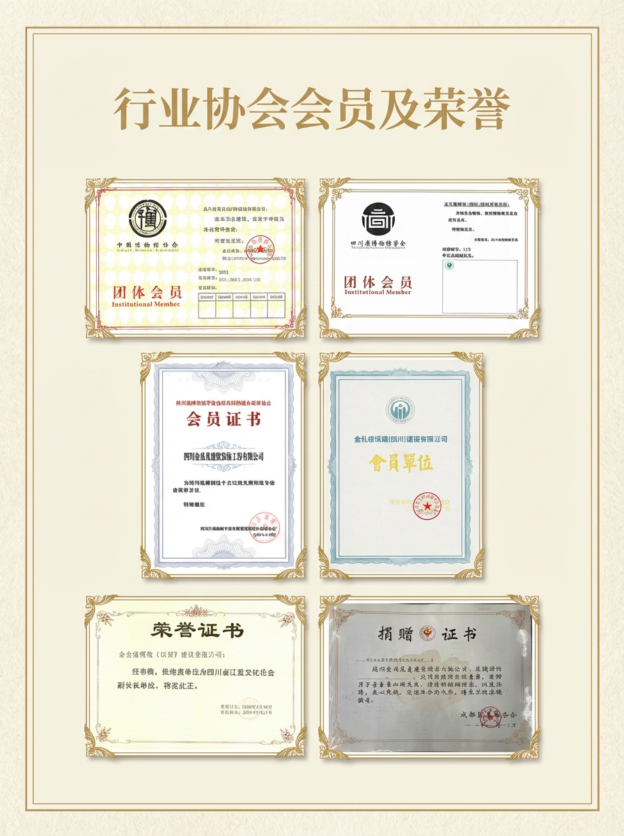 金孔雀先后成为四川省装饰协会会员单位、中国展览馆协会会员单位、四川省博物馆理事单位、成都民办博物馆发展研究院合作单位、成都市古迹遗址保护协会会员单位和成都市博物馆协会副会长单位。